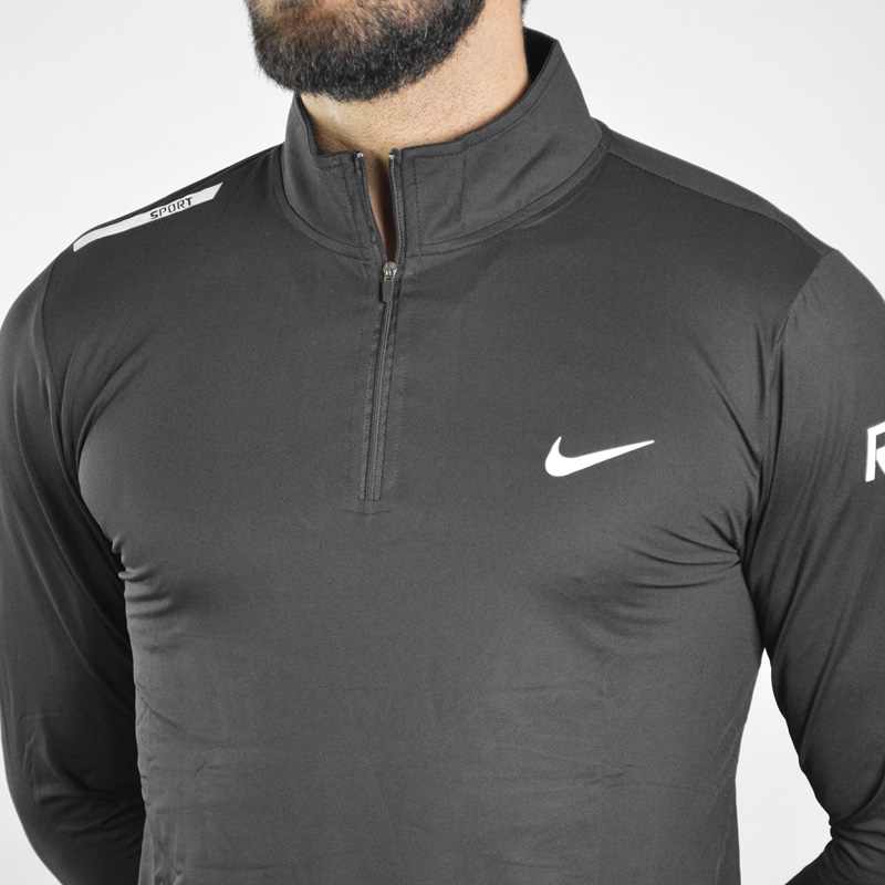 استرج آستین بلند نیم زیپ ورزشی مردانه نایک مدل Run-521 مشکی