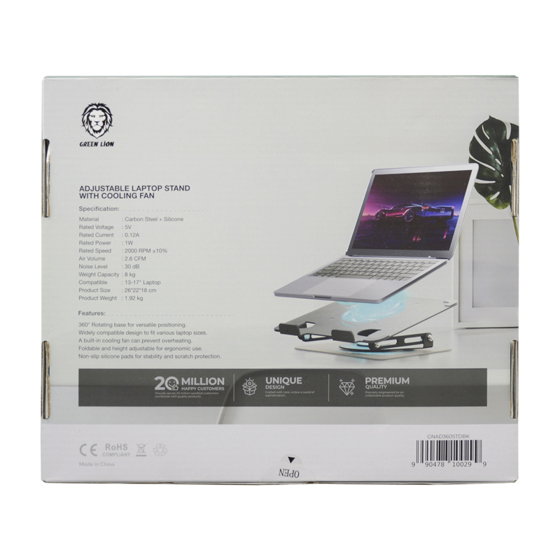 استند فلزی تاشو و فن خنک کننده لپتاپ گرین لاین مدل GNAD360STDBK