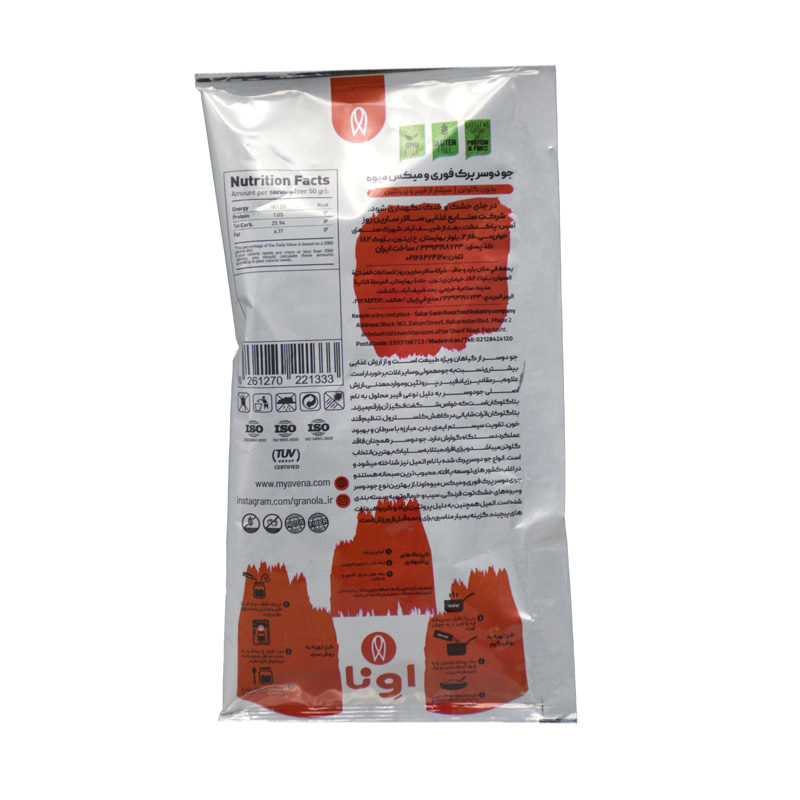 اوتمیل جودوسر پرک اونا سری P میکس میوه بدون گلوتن ۵۰ گرمی