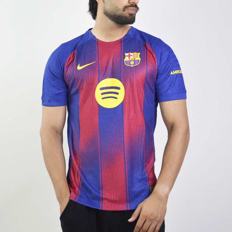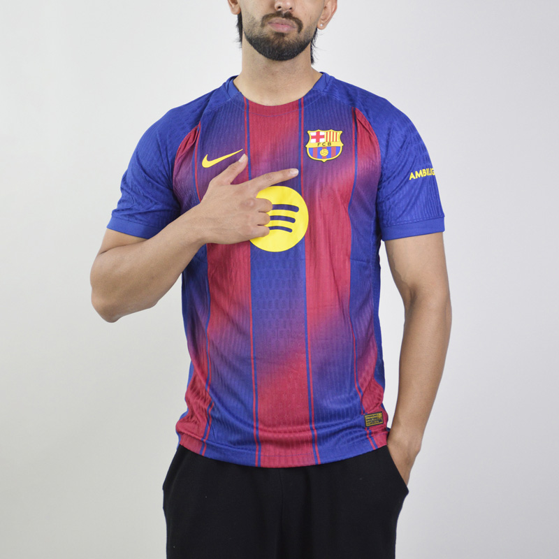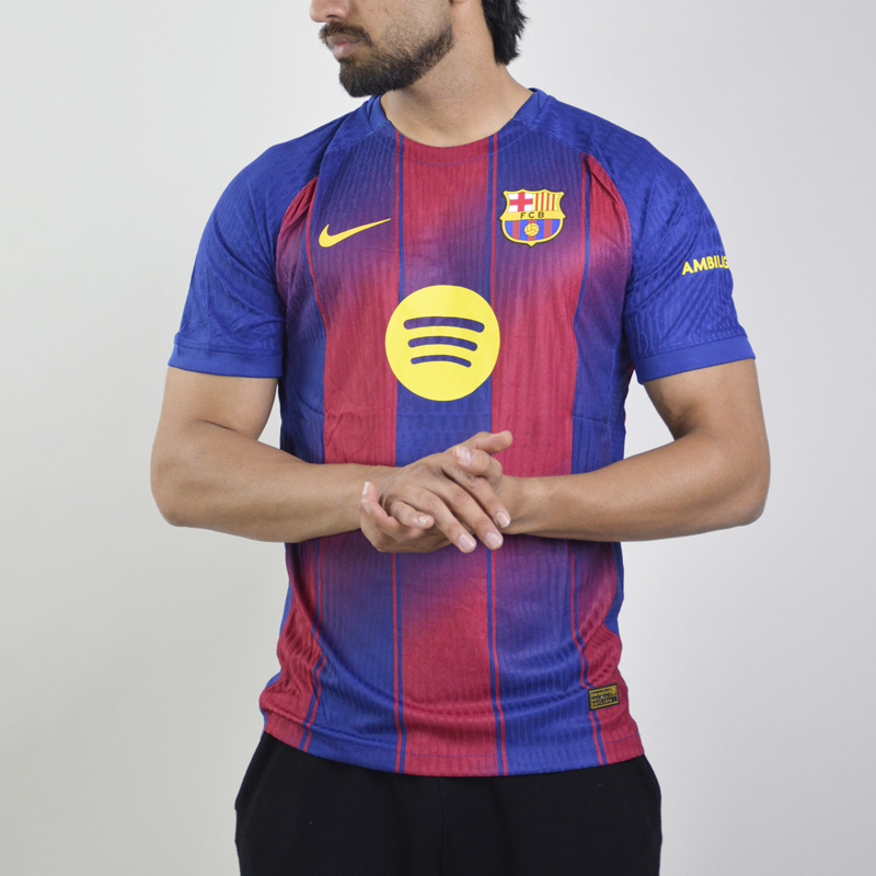 تیشرت فوتبالی پلیری بارسلونا مدل Nike-2025-26 انتخابی ویژه برای هواداران آبیواناریهاست؛ لباسی مدرن که در فصل ۲۰۲۵-۲۰۲۶ توسط کمپانی نایکی طراحی شده و با ظرافت و جزئیاتی مثالزدنی، ستارههای نیوکمپ را در تمرین و مسابقه همراهی می کند.