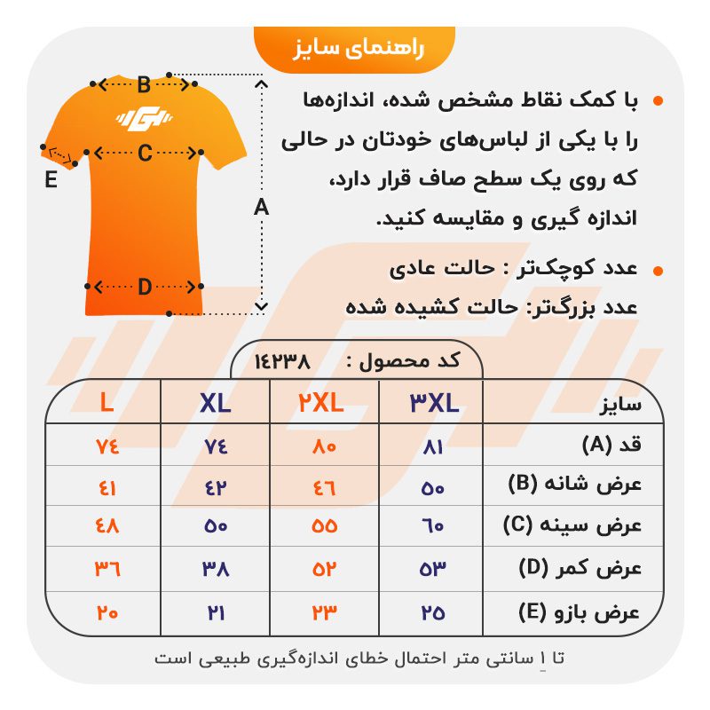 راهنما سایز تیشرت ورزشی مردانه الیمپ مدل GB-Born آبی