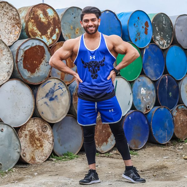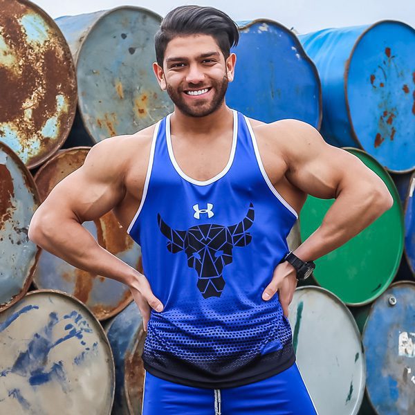 راهنما سایز رکابی بدنسازی مردانه آندر آرمور مدل مینیاتوری آبی