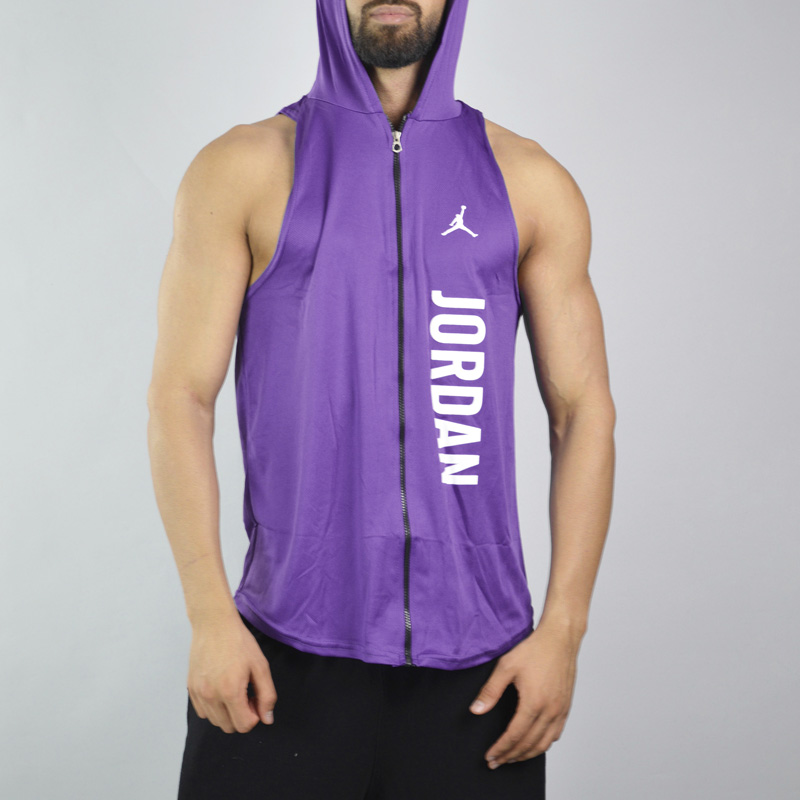 رکابی کلاهدار ورزشی مردانه جردن مدل PY-JDI-3G1112 زیپ دار بنفش