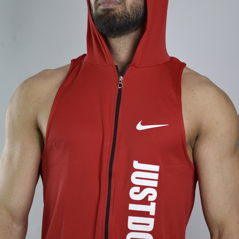 رکابی کلاه دار ورزشی مردانه نایک مدل PY-JDI زیپ دار قرمز