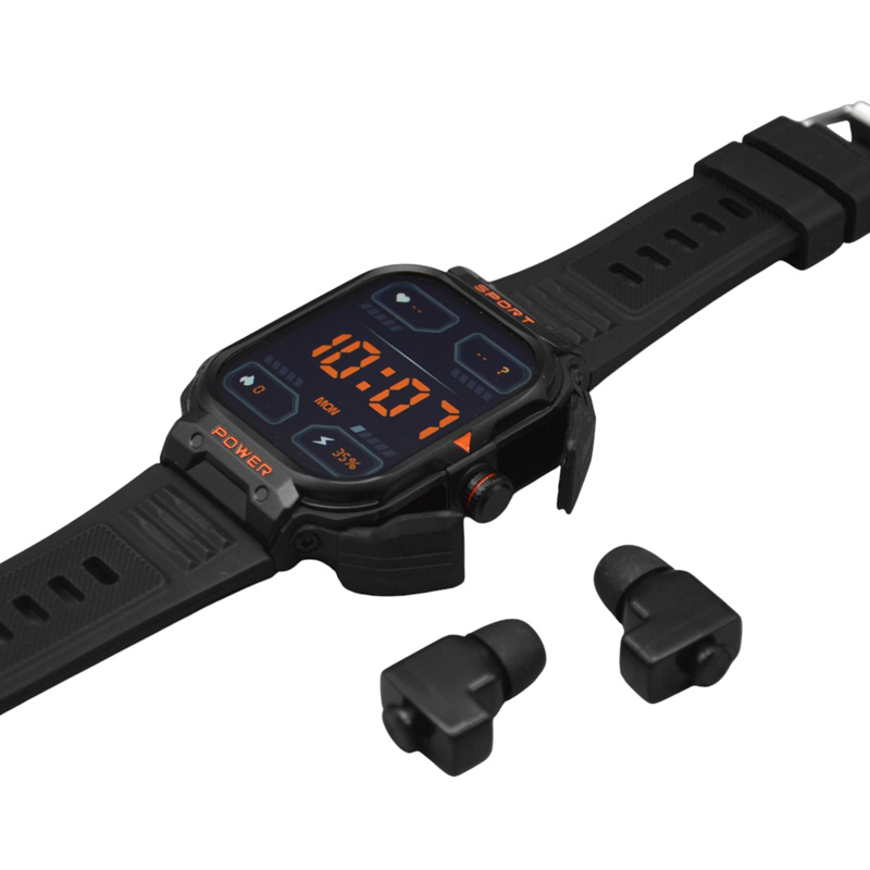 اما چیزی که این ساعت را از مدل های مشابه متمایز می کند، محل قرارگیری دو هندزفری بلوتوثی داخل بدنه ساعت است. این طراحی نه تنها از نظر زیبایی شناسی جذاب است، بلکه از نظر عملکردی نیز کاربردی محسوب می شود؛ چون همیشه هندزفری های خود را در دسترس دارید و نگران گم شدن آن ها نخواهید بود.