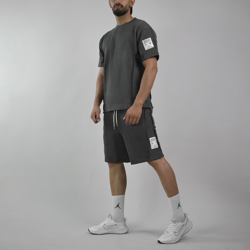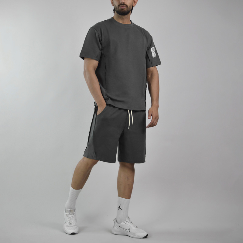 ست تیشرت و شلوارک اسپرت دنیم ور مدل HZ-202 طوسی تیره