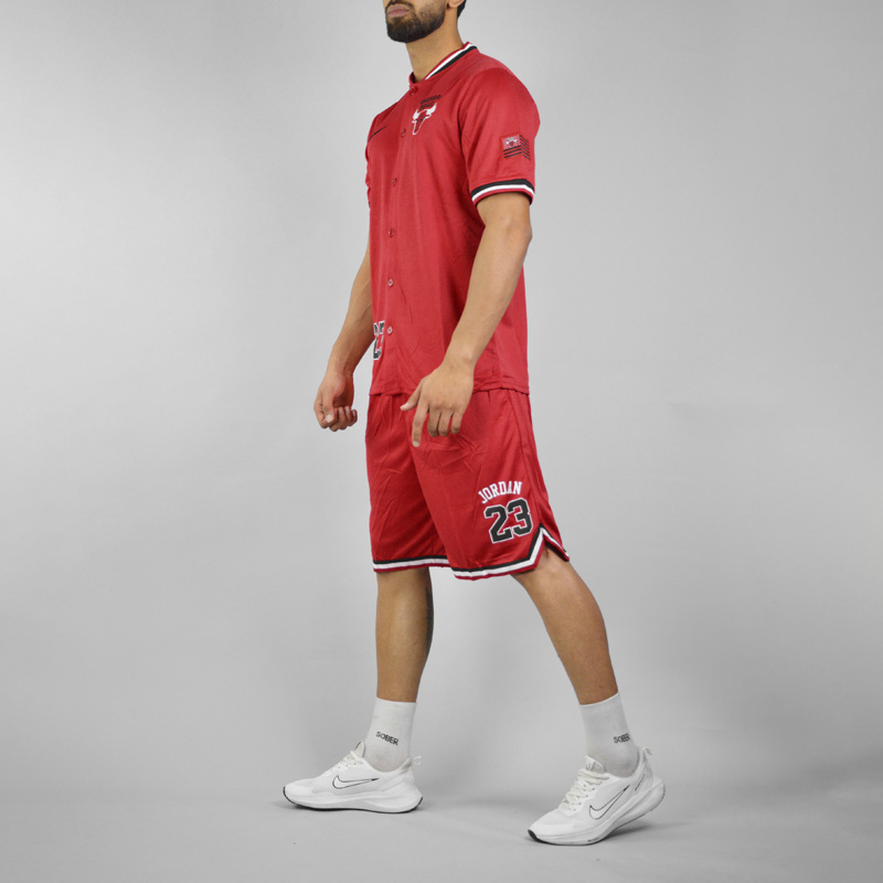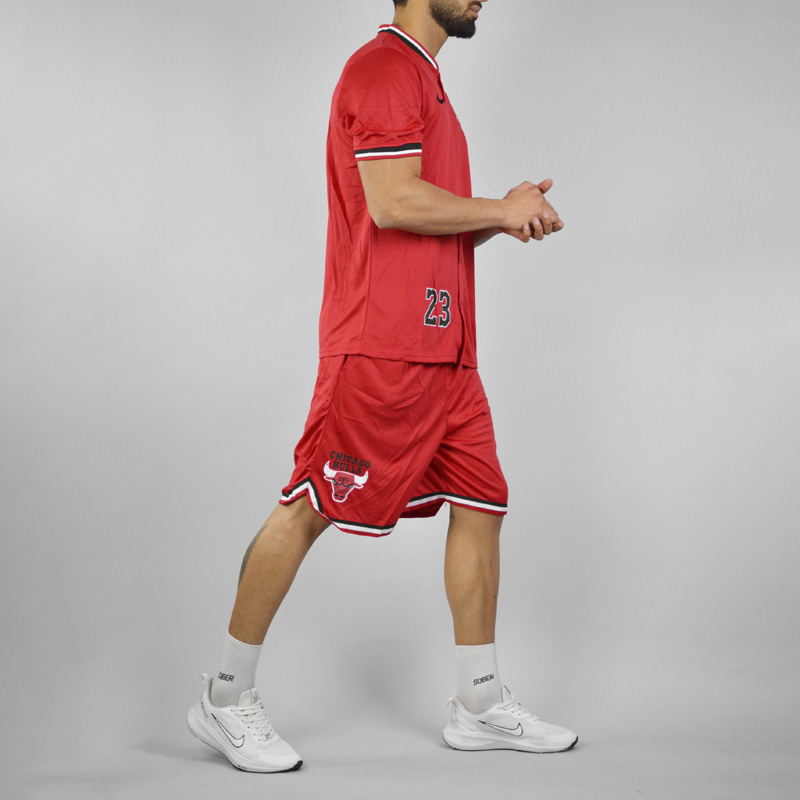 ست تیشرت و شلوارک بیسبالی مردانه شیکاگو بولز مدل Dri Fit-2B1856 قرمز سایز