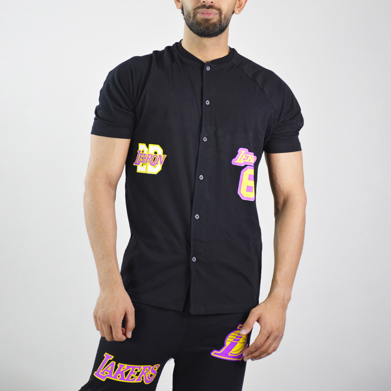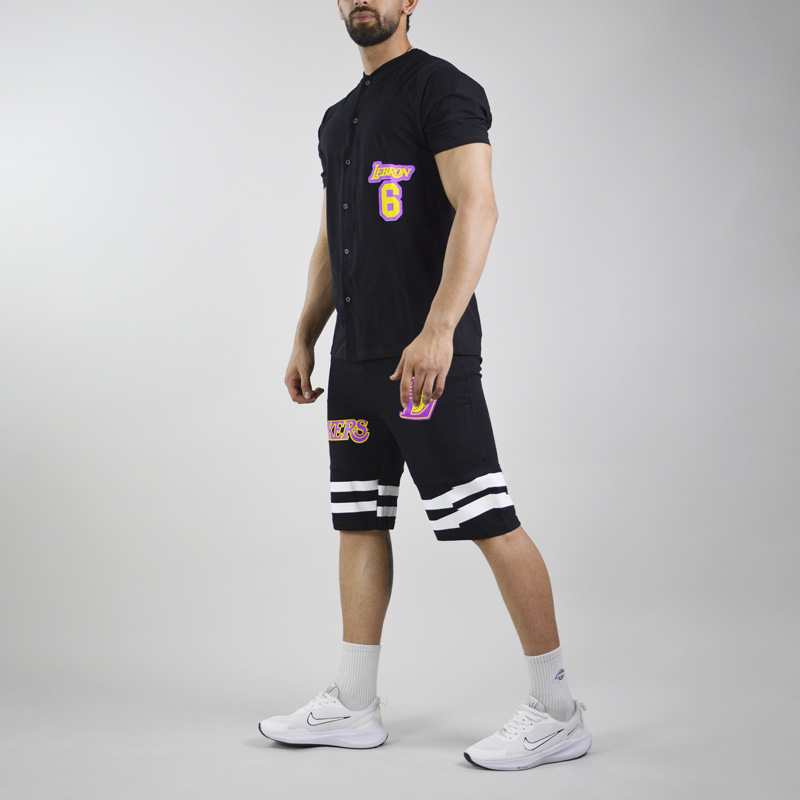 ست تیشرت و شلوارک بیسبالی مردانه لیکرز مدل SPL- 2B2056 مشکی سایز