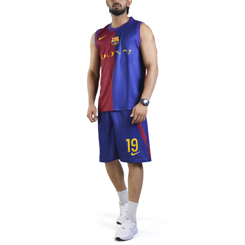 ست رکابی و شلوارک فوتبالی بارسلونا مدل Nike-Dri Fit-4D0593 سرمه ای