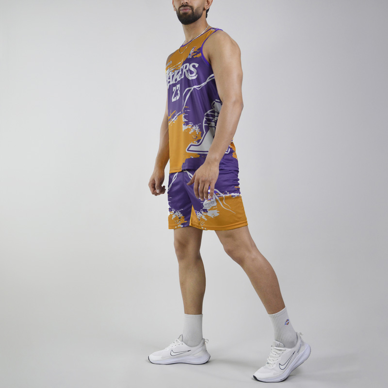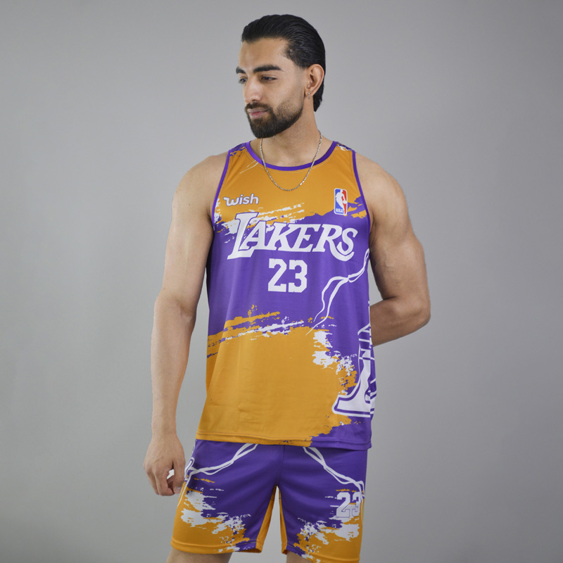 ست رکابی و شلوارک ورزشی مردانه لیکرز مدل PY-2B1931 زرد سایز
