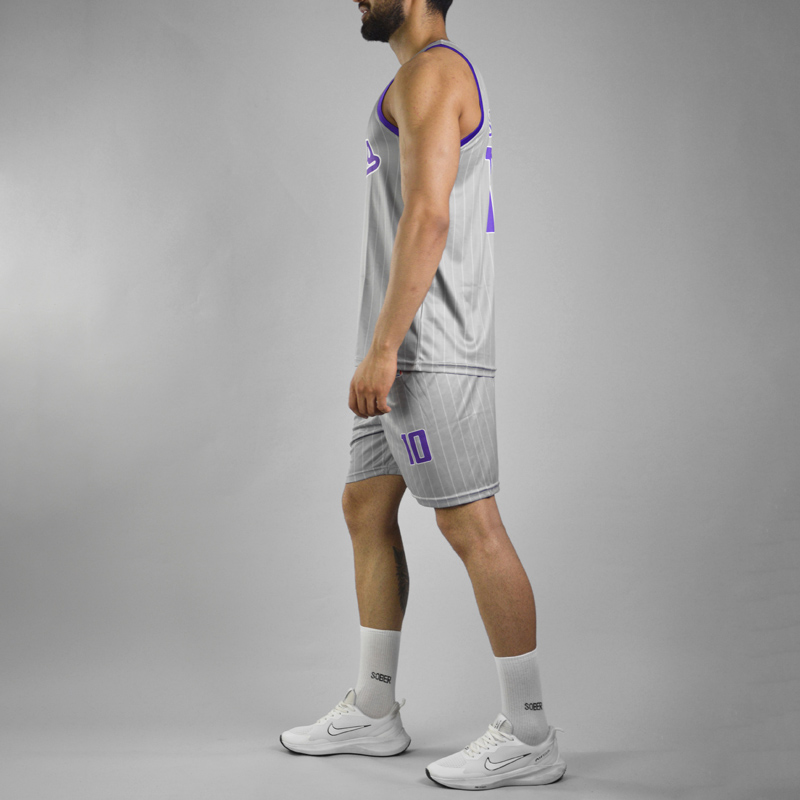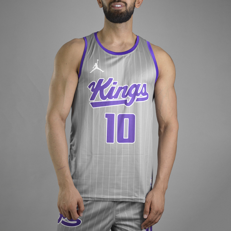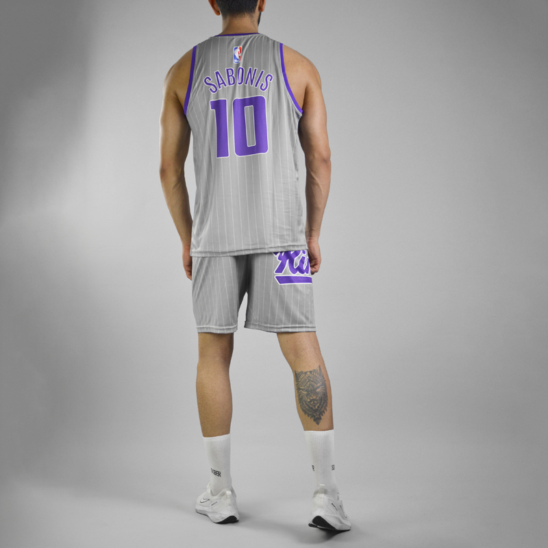 ست رکابی و شلوارک مردانه ساکرامنتو کینگز مدل PY-Jordan-3D607 طوسی روشن
