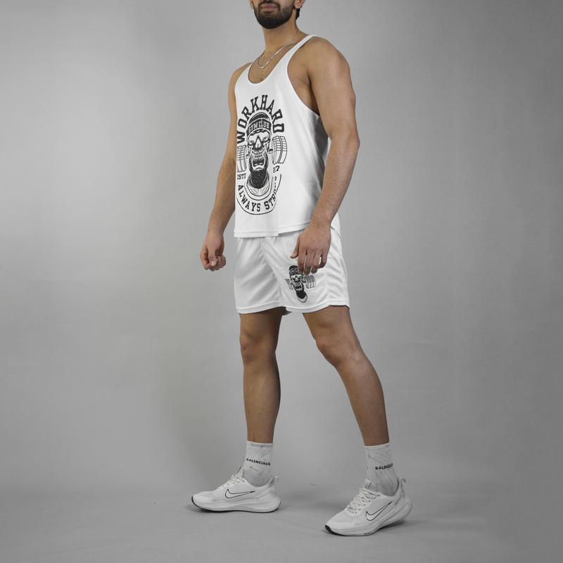 ست رکابی و شلوارک ورزشی مردانه جیم کلاب مدل PY-2B1456 سفید سایز