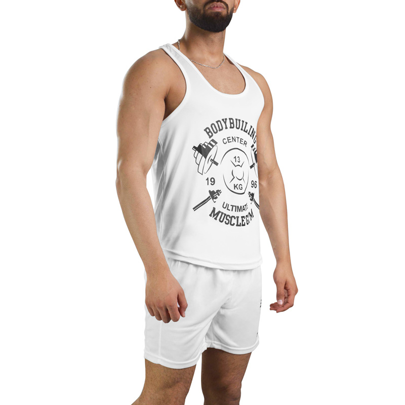 ست رکابی و شلوارک ورزشی مردانه ماسل جیم مدل Py-2B197 سفید
