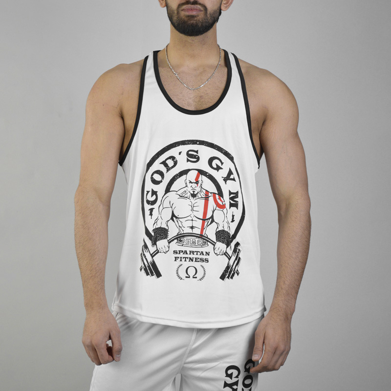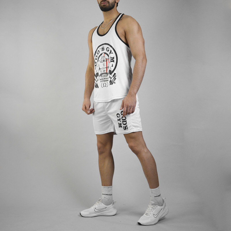 ست رکابی و شلوارک ورزشی مردانه گادز جیم مدل PY-2A0381 سفید