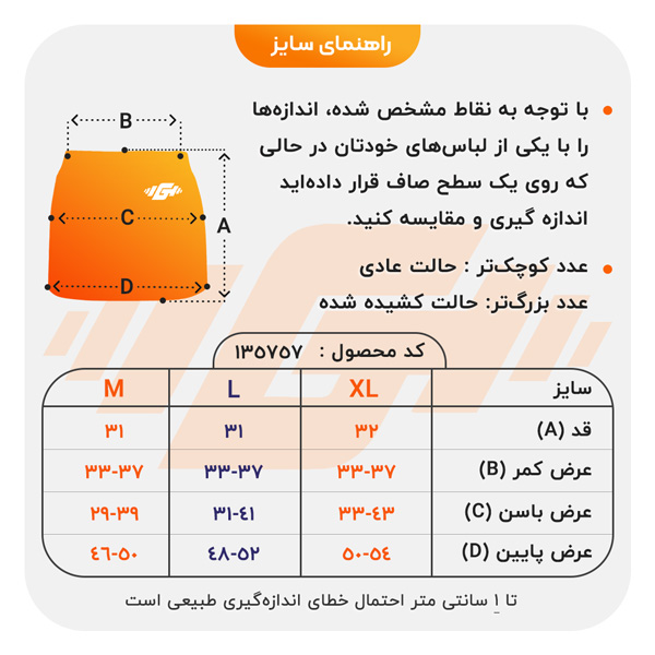| سایز لباس | M, L, XL |