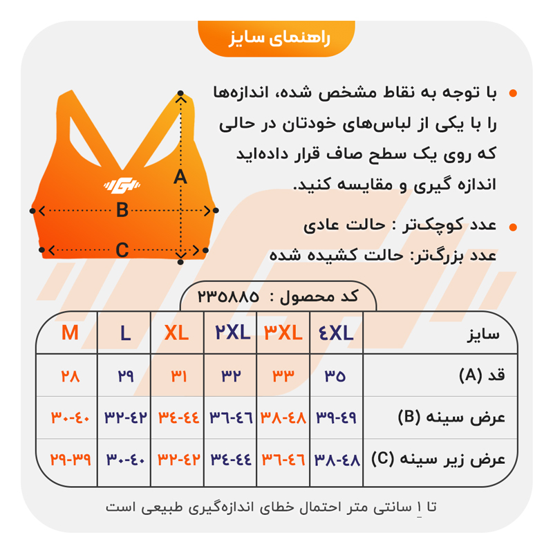 | سایز لباس | M, L, XL, 2XL, 3XL, 4XL |