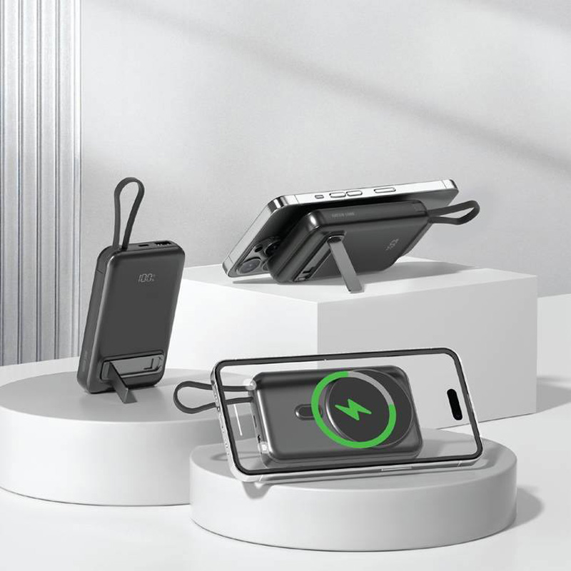 یکی دیگر از ویژگی‌های منحصربه‌فرد این پاوربانک، وجود جاذبه مغناطیسی بالای آن است که به‌کارگیری آن برای شما را بسیار راحت‌تر می‌کند. با استفاده از دکمه پاور، شما می‌توانید به‌راحتی پاوربانک را روشن و خاموش کنید. همچنین، صفحه دیجیتال موجود بر روی آن وضعیت شارژ باتری را به ‌طور واضح نمایش می‌دهد؛ این امر به کاربر کمک می‌کند که همواره از میزان شارژ پاوربانک خود مطلع باشد.