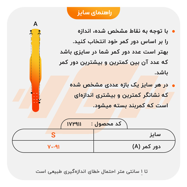 1. دور کمر S سایز: 70-91 سانتی متر